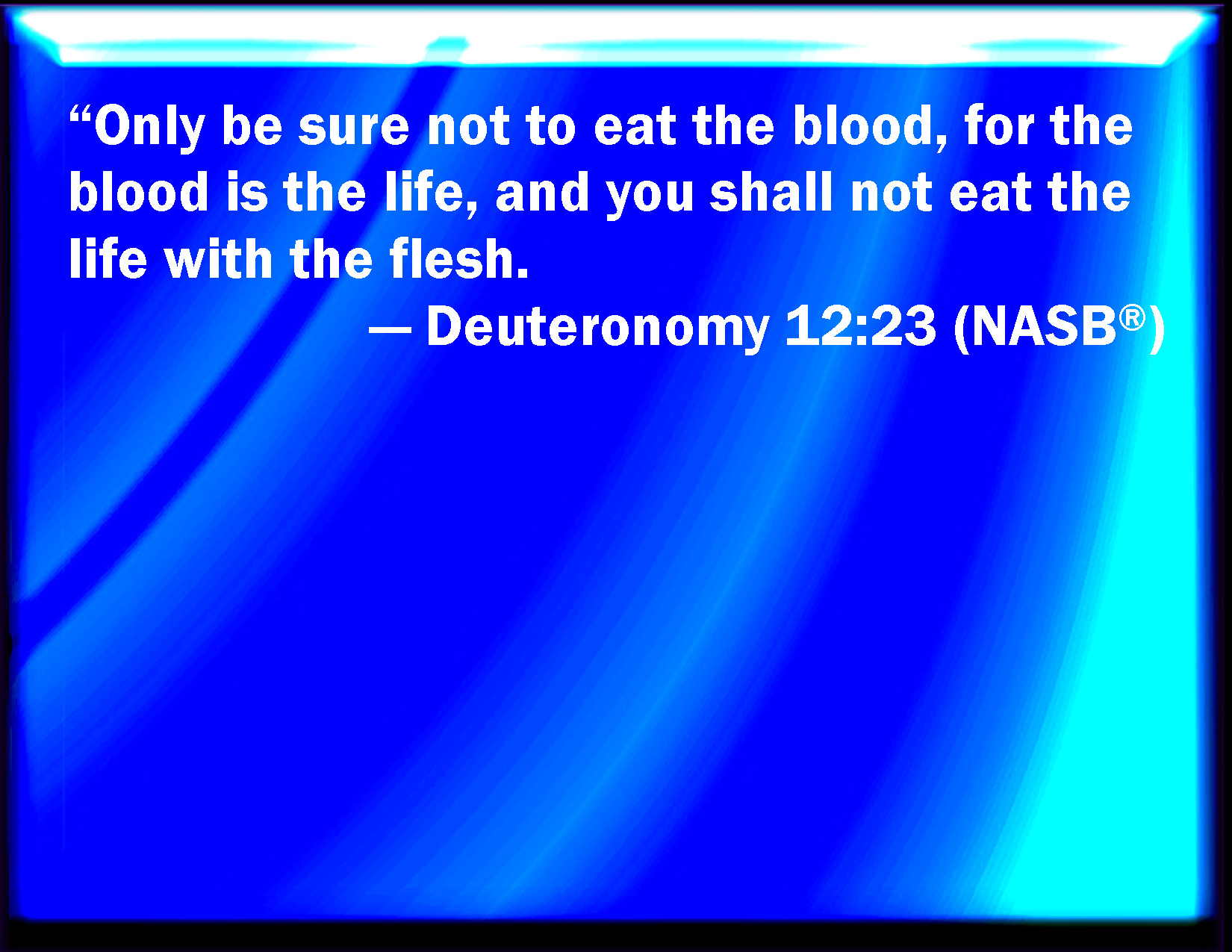 Only be sure that thou eat not the blood: for the blood is the life; and thou shalt not eat the life with the flesh.