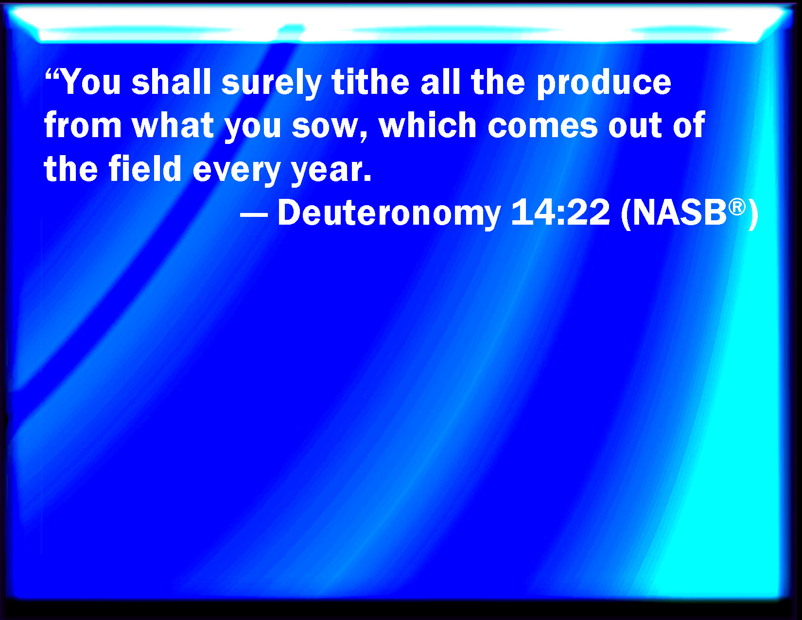Deuteronomy 14:22 You shall truly tithe all the increase of your seed, that the field brings forth year by year.