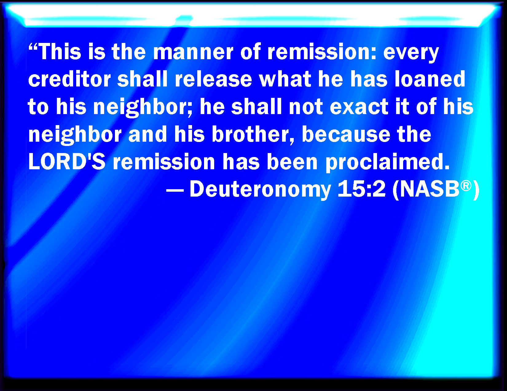 Deuteronomy 15:2 And this is the manner of the release: Every creditor that lends ought to his neighbor shall release it; he shall not exact it of his neighbor, or of his brother; because it is called the LORD's release.