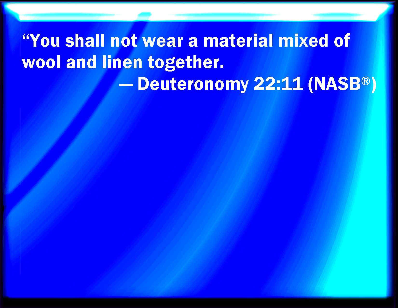 Deuteronomy 22:11 You shall not wear a garment of divers sorts, as of woolen and linen together.