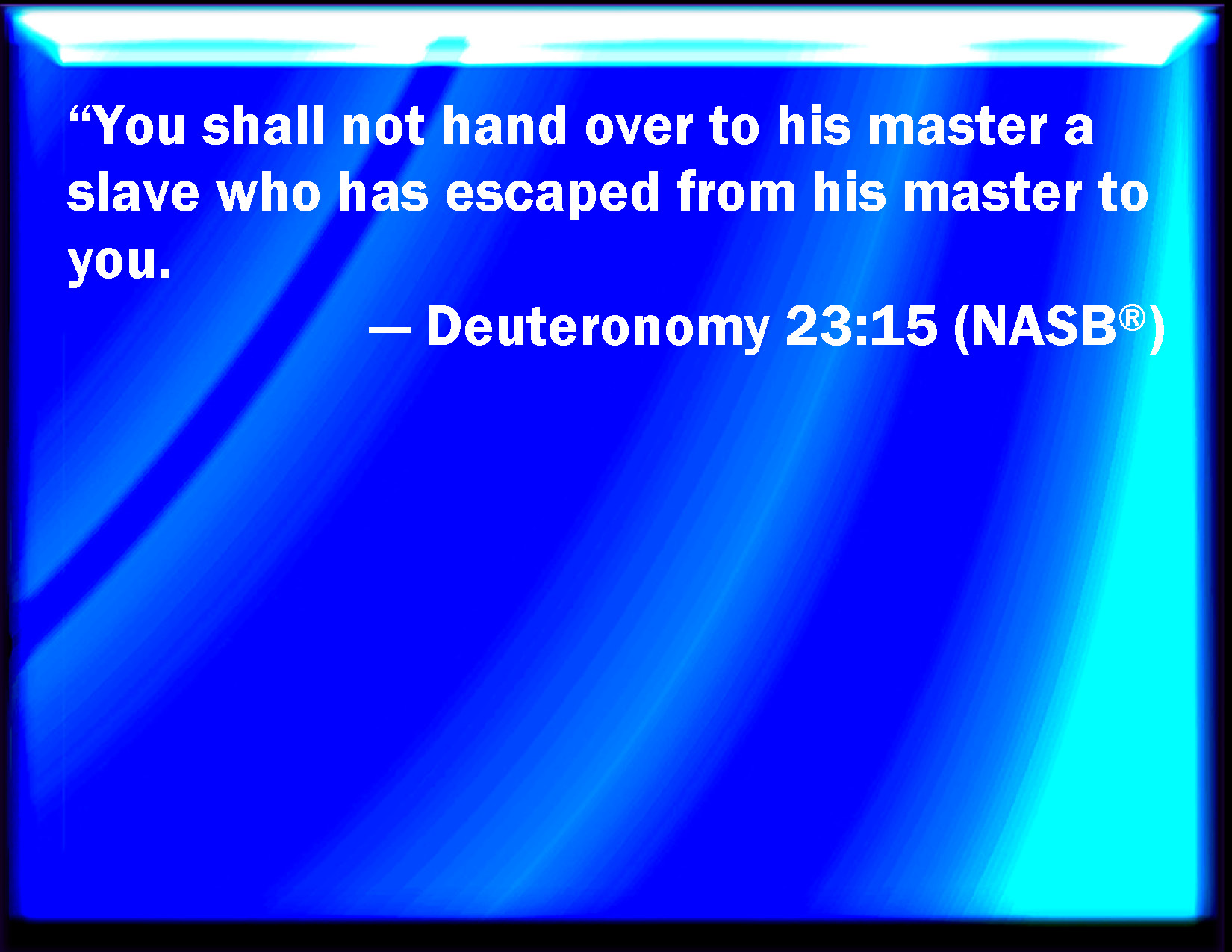 Deuteronomy 23:15 You shall not deliver to his master the servant which is escaped from his master to you: