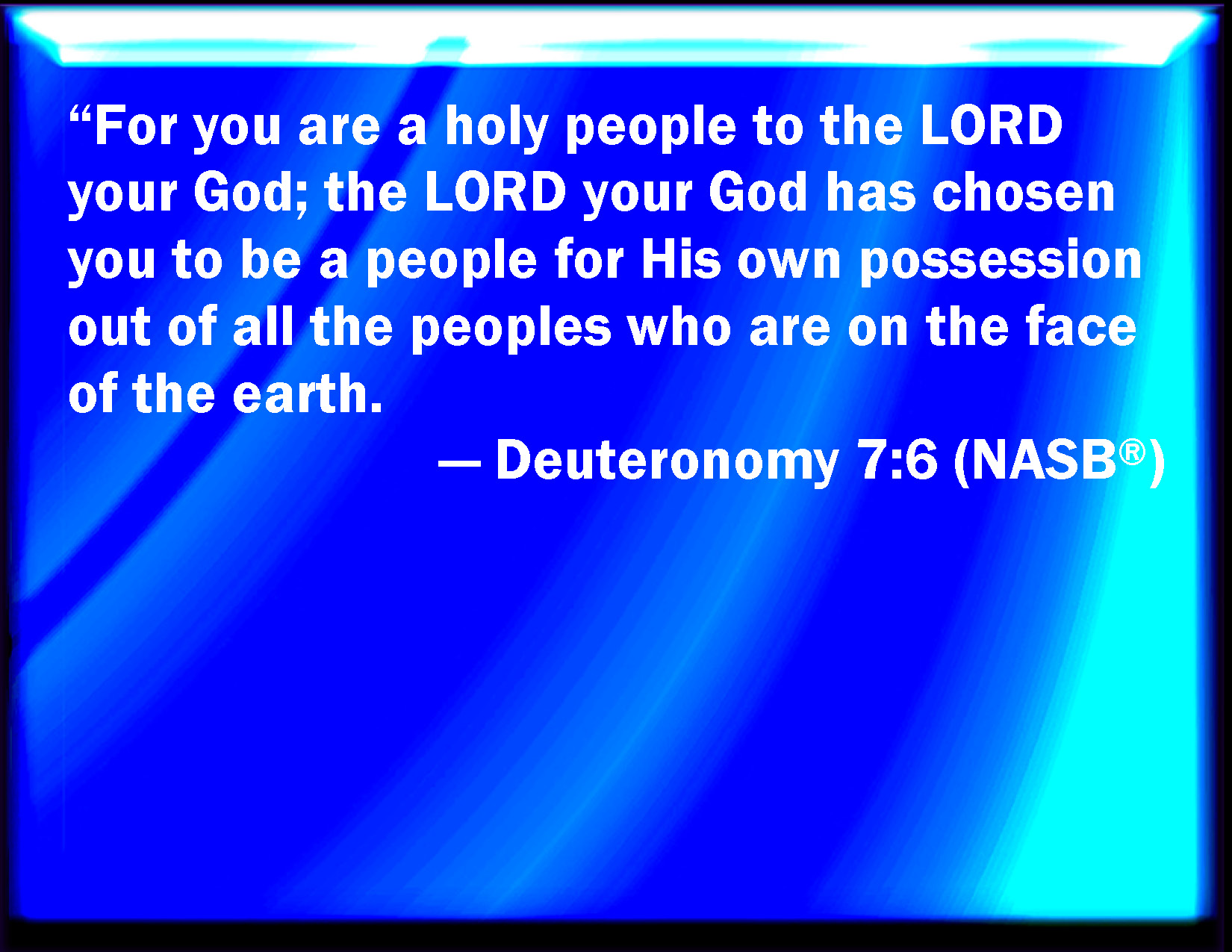 For a holy people art thou unto Jehovah thy God: Jehovah thy God hath chosen thee to be unto him a people for a possession, above all the peoples that are upon the face of the earth.