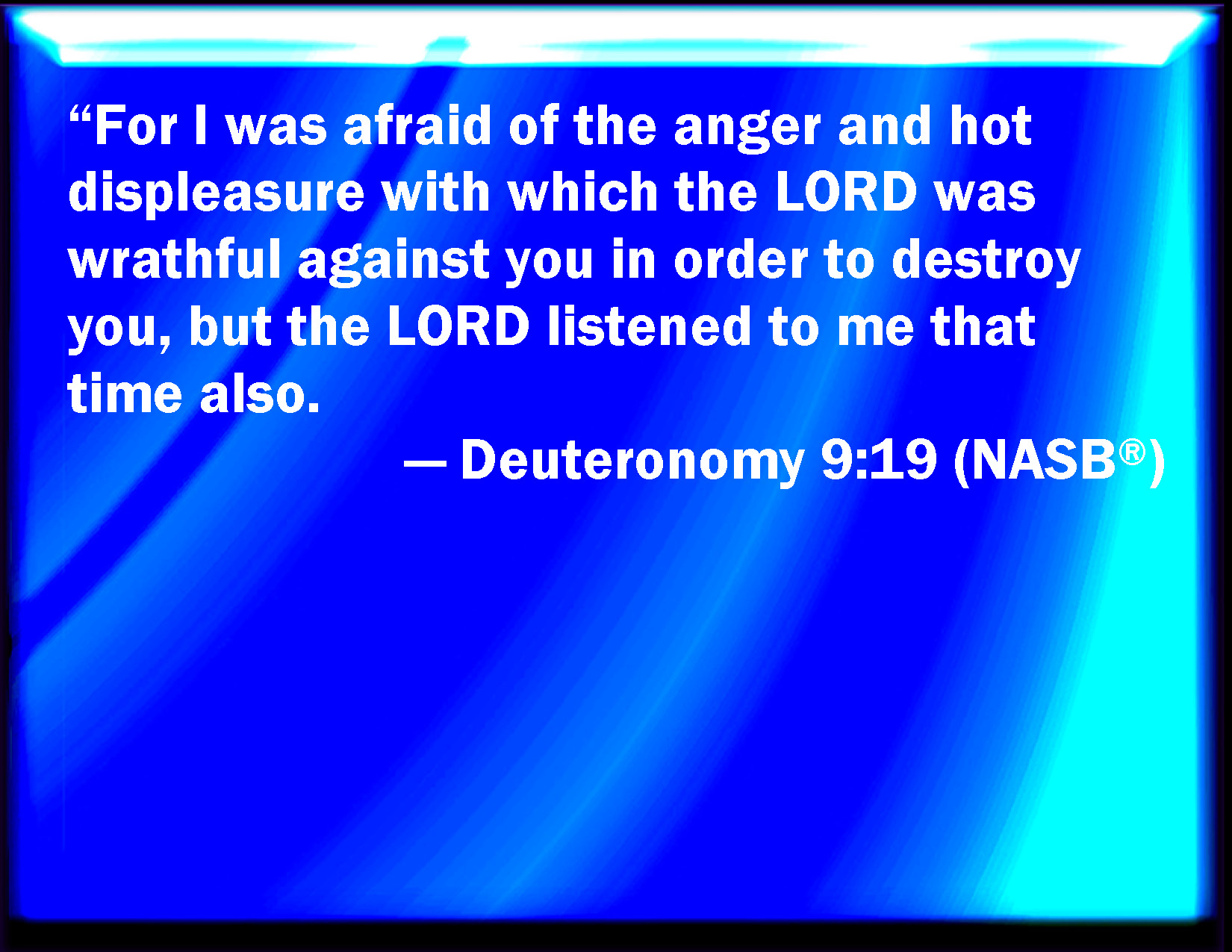 Deuteronomy 9:19 For I was afraid of the anger and hot displeasure, with which the LORD was wroth against you to destroy you. But the LORD listened to me at that time also.